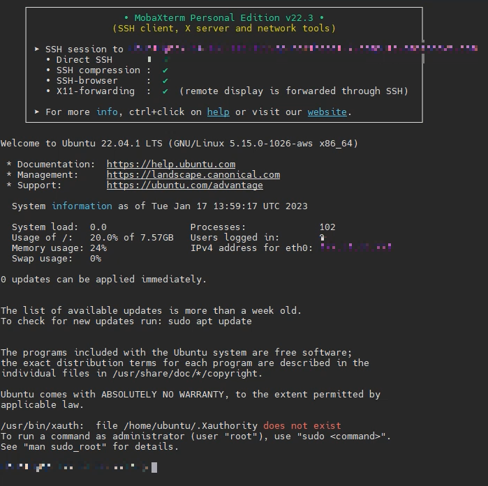 username을 설정한 인스턴스 생성할 때 설정한 OS인 ubuntu로 입력
