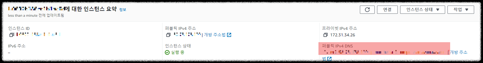 3-1. 인스턴스 상세화면에서 퍼블릭 IPv4 DNS를 복사합니다.