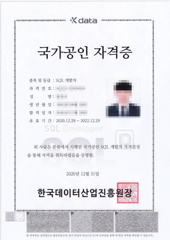 SQLD 자격증은 유효기간이 없는 자격증입니다. 단, 처음 취득 후 2년 동안의 유효기간이 있지만 2년이 넘어가기 전에 보완교육을 이수하면 무기한으로 연장이 됩니다.
